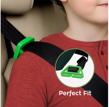 - Zielona prowadnica zapewnia prawidłowe ułożenie pasa bezpieczeństwa na obojczyku dziecka