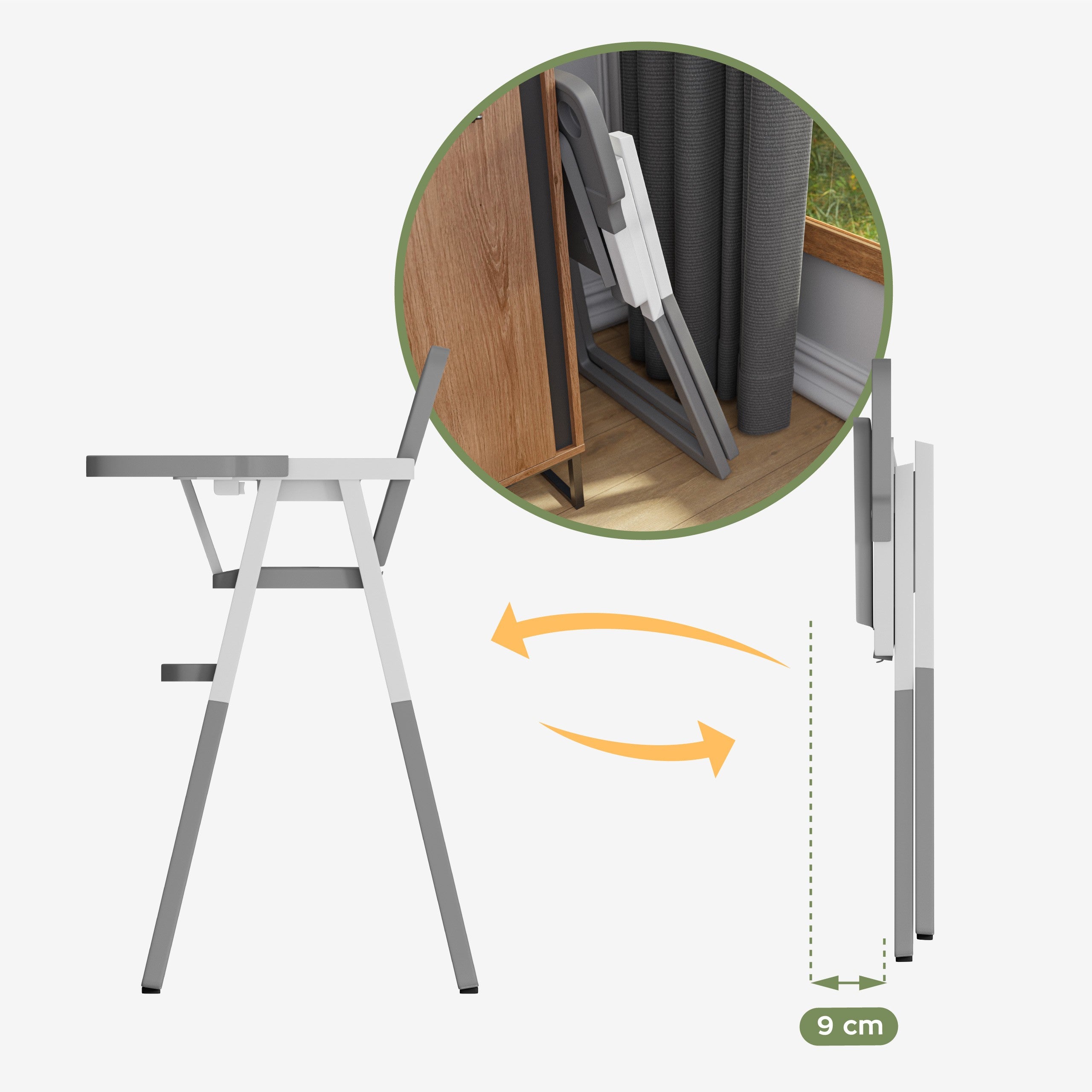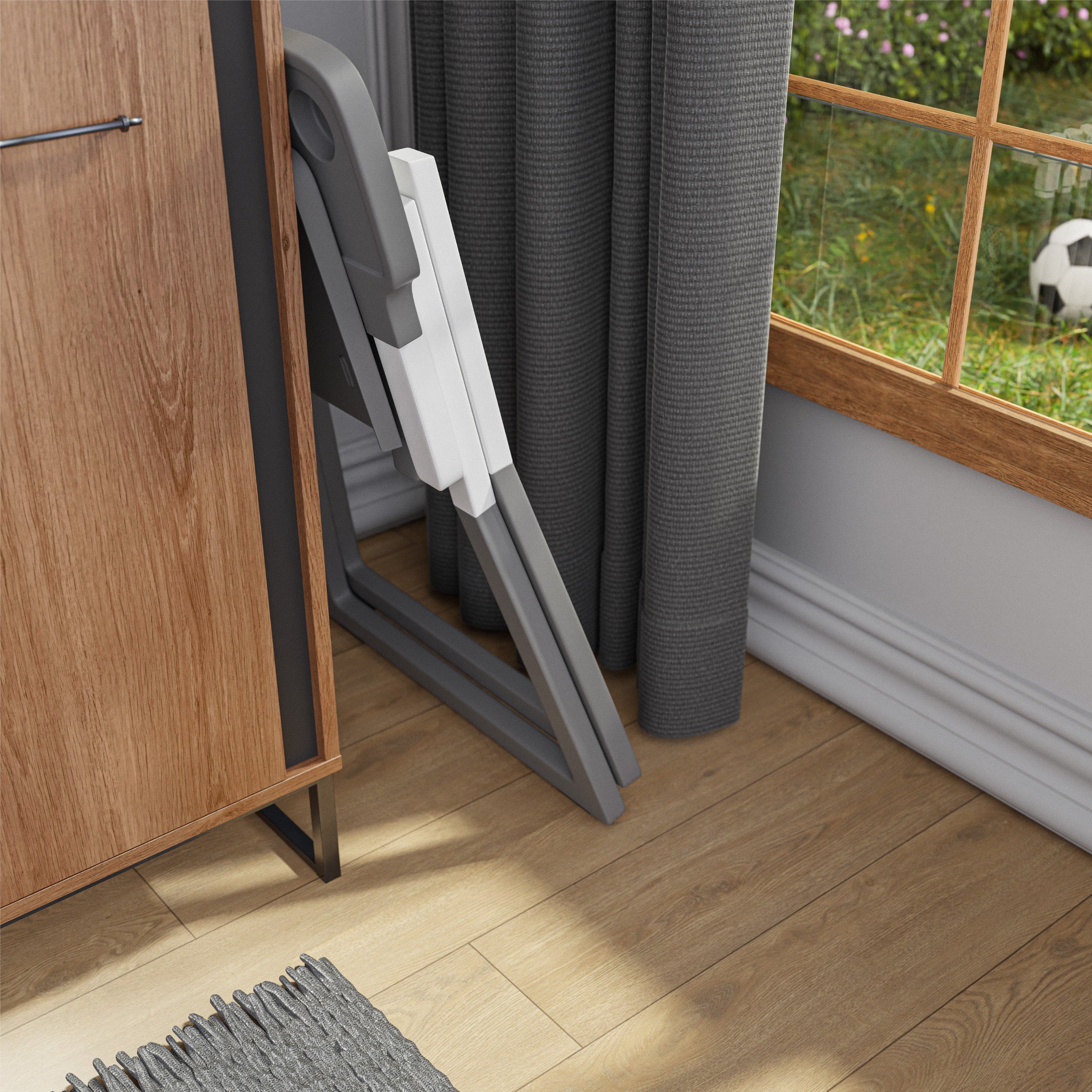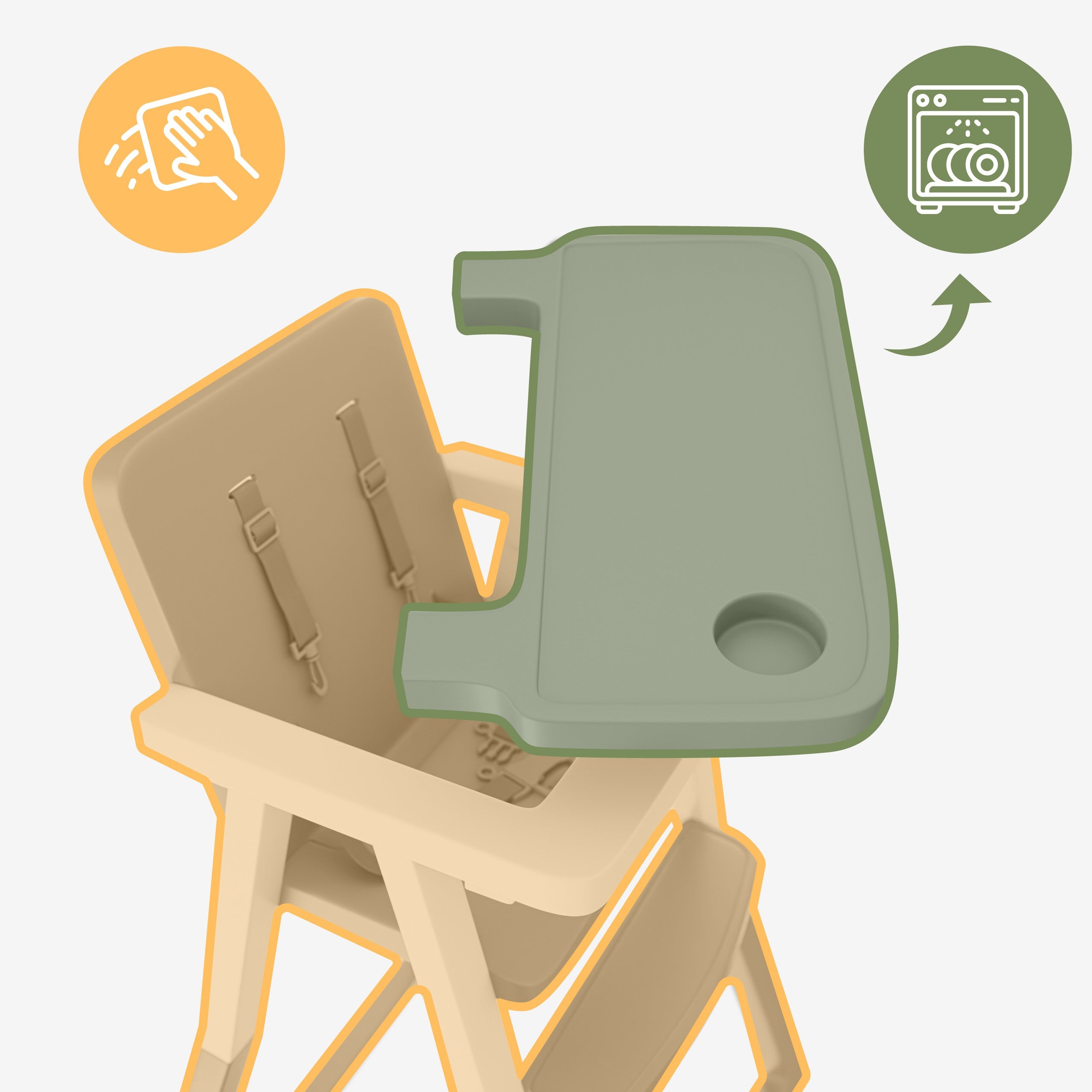 - Kompaktowe, składane krzesełko do karmienia